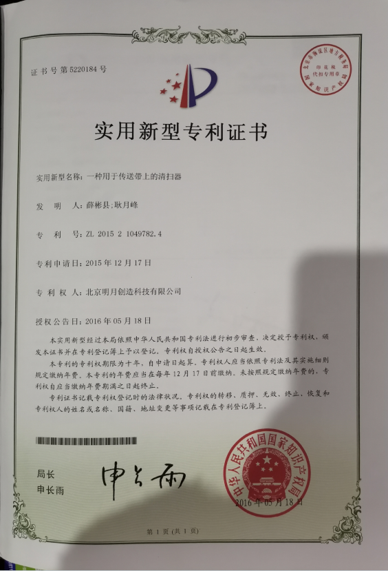 A Cleaner For Conveyor Belts (Beijing Moon To Hebei Zhaoyue)