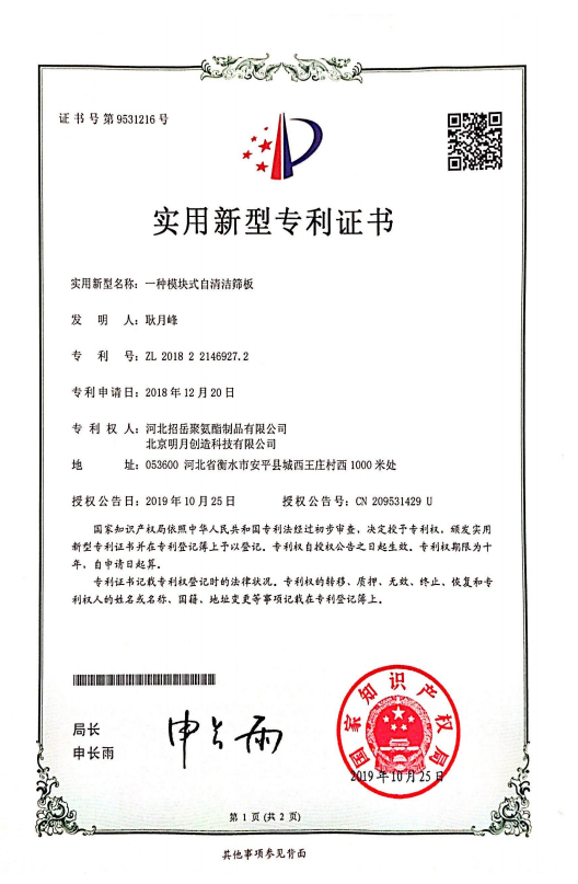 A Utility Model Certificate For A Self-cleaning Screen With A Larger Screening Area - Zhaoyue 2203
